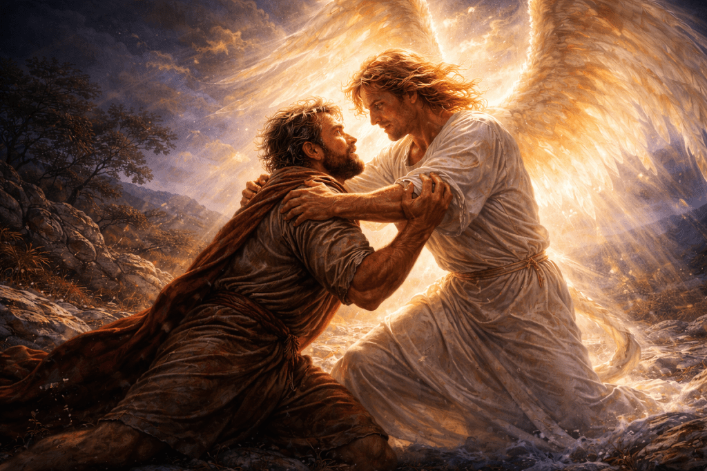 Jacob does not win the fight. With a single touch, his opponent dislocates his hip. Yet Jacob refuses to let go. For the first time, he is not grasping for advantage—he is clinging for grace.