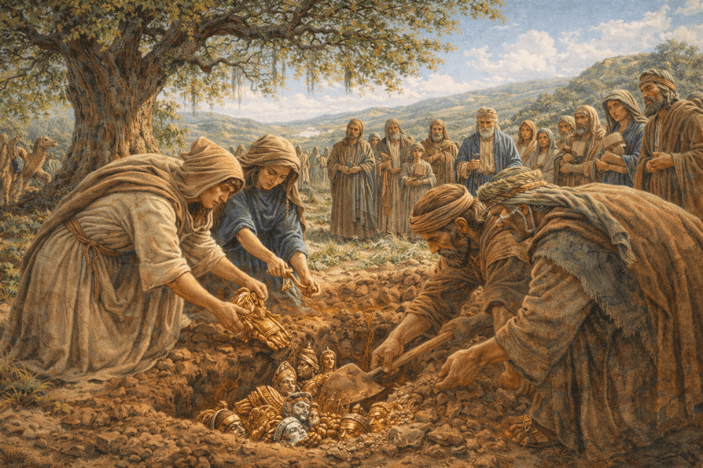 “Put away the foreign gods… purify yourselves… change your garments.” They buried their idols “underneath the oak 🌳which was near Shechum.” (v. 4)