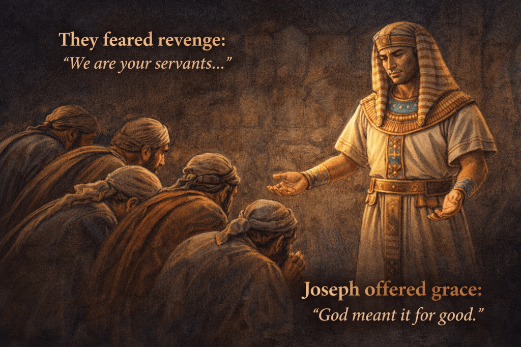 Jacob’s death stirred something dark in Joseph’s brothers. Though Joseph had already forgiven them, guilt whispered lies: What if he was only waiting for Dad to die? What if now he pays us back?