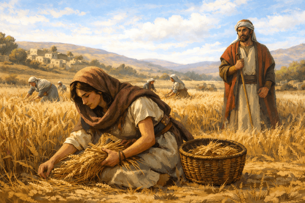 Boaz notices—faithfulness tends to reveal itself. He protects her, provides for her, and speaks kindly to her. Ruth receives it with humility, never assuming she deserves more.