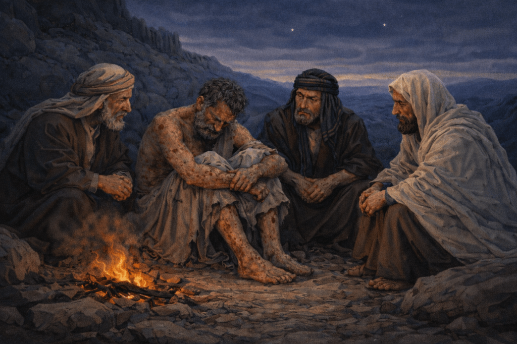 Job has reached the lowest point of his suffering. His body is broken. His grief is overwhelming. His wife’s words cut deeply. And into that moment step three friends: Eliphaz, Bildad, and Zophar.