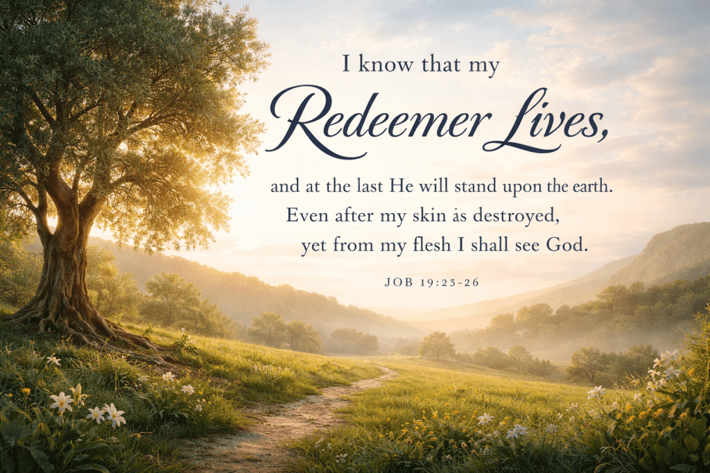 Then comes one of the most astonishing confessions in the Old Testament: “As for me, I know that my Redeemer lives, and at the last He will take His stand on the earth” (Job 19:25). The “I” is emphatic—I, even I, know. This is intimate, hard-won conviction.